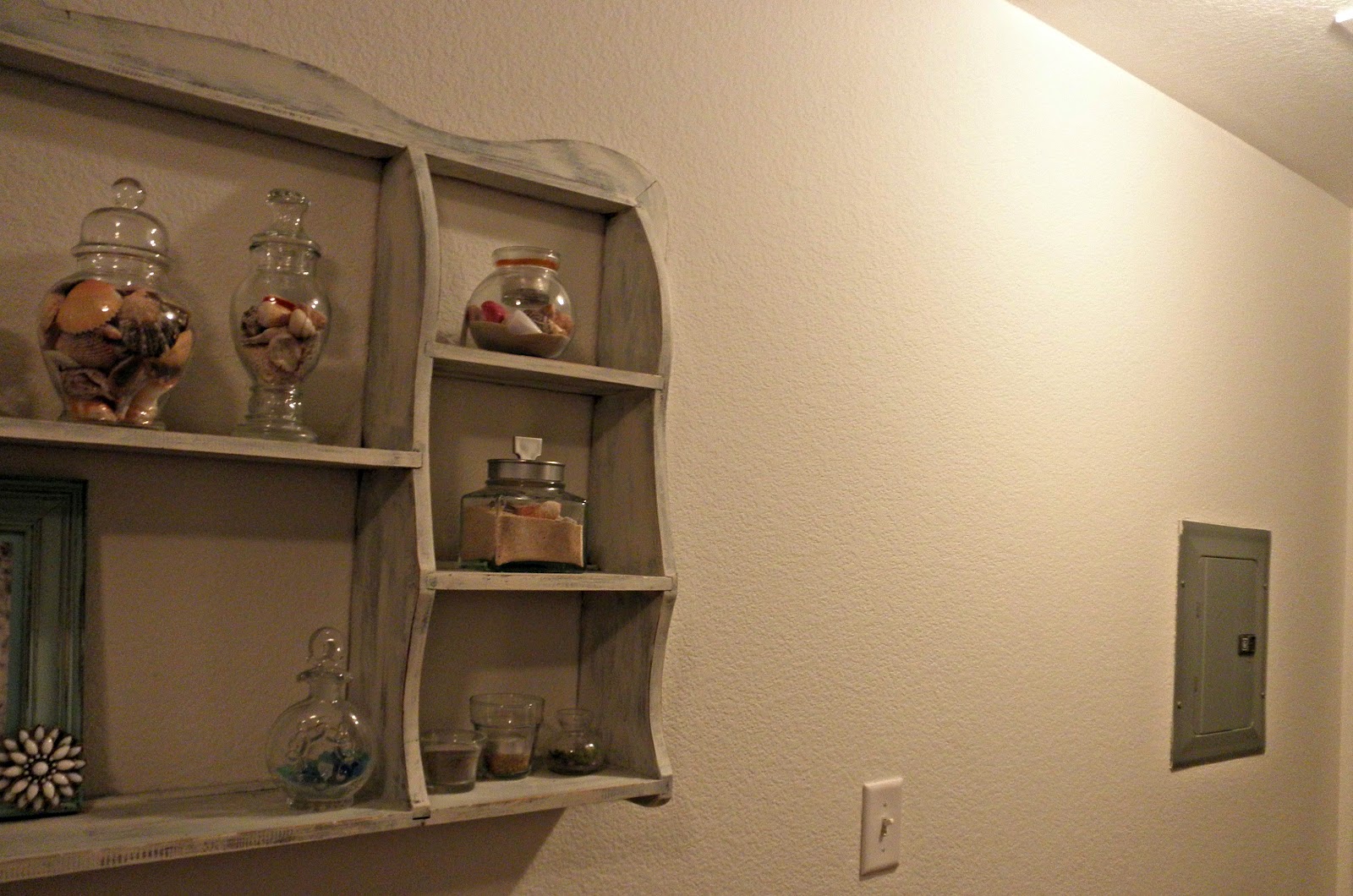 Hubby was so excited! He took the brackets off for me, and with a 20 gauge wire, hung it for me! Now we have a full length mirror! And our lovely electric panel box is gone, too.