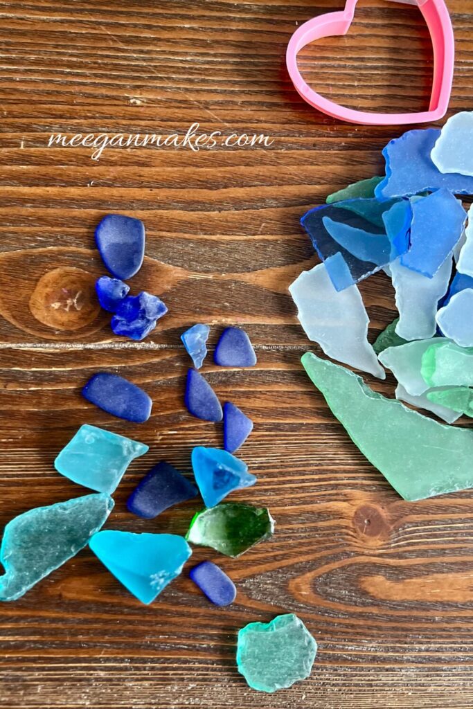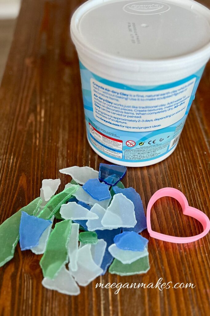 Gather the sea glass, shells. cookie cutter and air dry clay to get started.