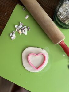 Using a rolling pin and cutting mat, roll out the air dry clay large enough to fit your cookie cutter.
