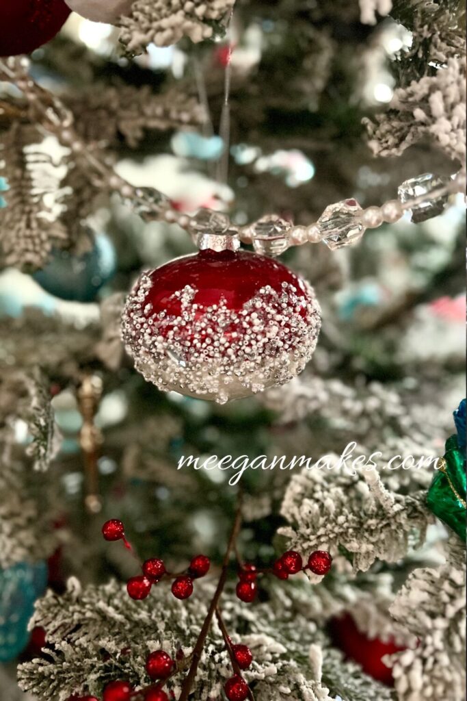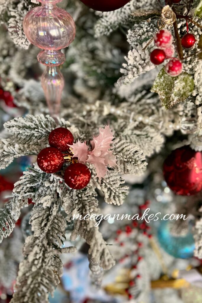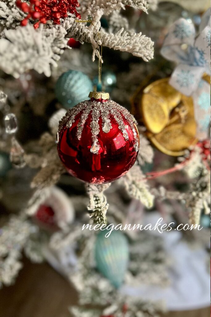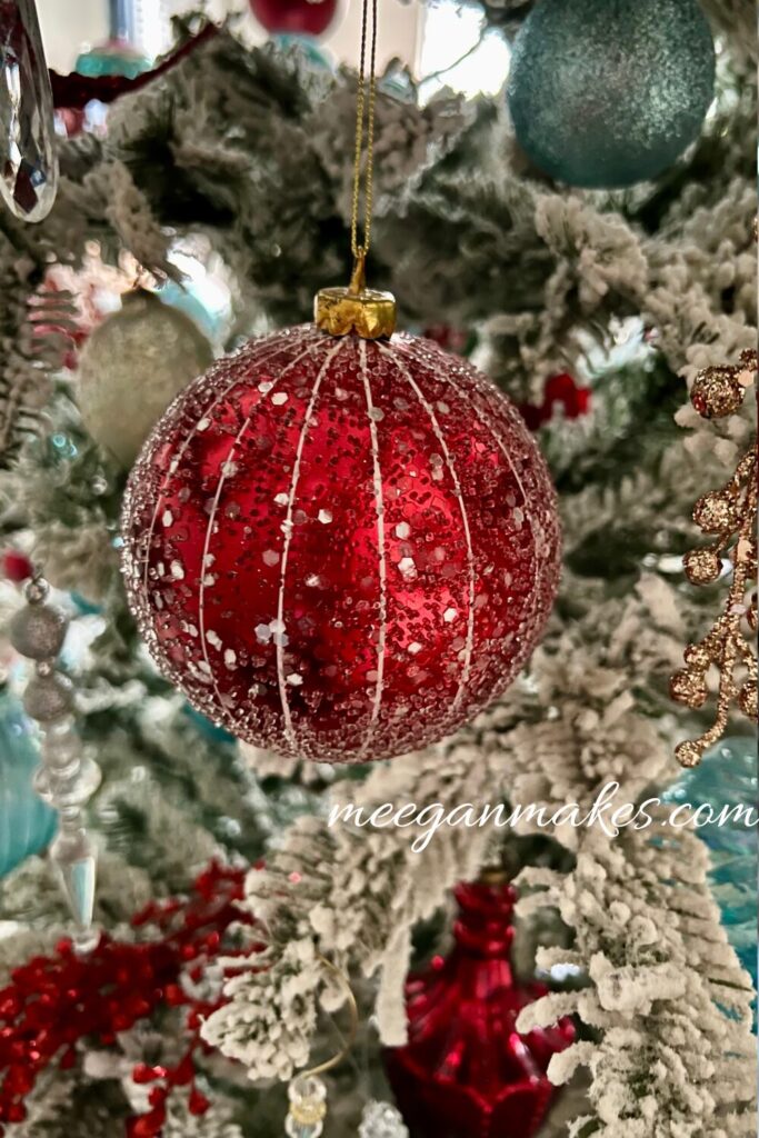 I couldn’t get the gorgeous red ornaments out of my mind. They were sparkly, vibrant and they would go perfectly with aqua, PLUS a touch of pink, gold or silver.