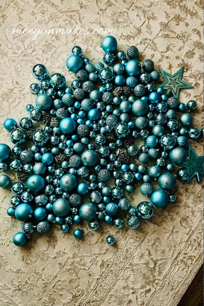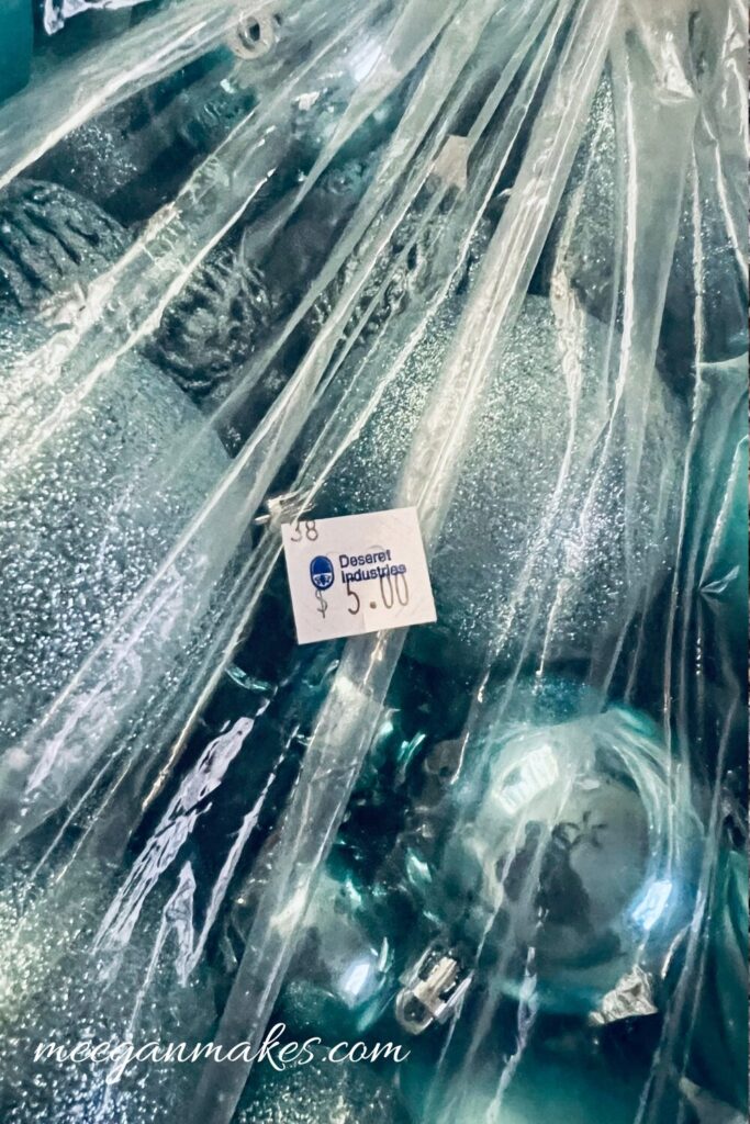 finding over 100 aqua ornaments at the thrift store for just 5 bucks!