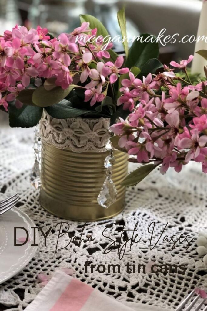 I don’t know about you. But with having to be home a lot, I have an abundance of empty tin cans. In-between cooking homemade chili, chicken or tuna salad, or a quick bowl of canned soup. My can collection was growing. It gave me the inspiration to made these Boho Style Vases from Tin Cans.