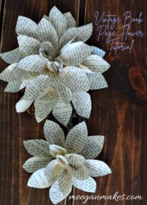 I am thinking about a few Fall ideas. Against my will, Fall is coming upon us! These book page flowers are perfect for anytime of year.