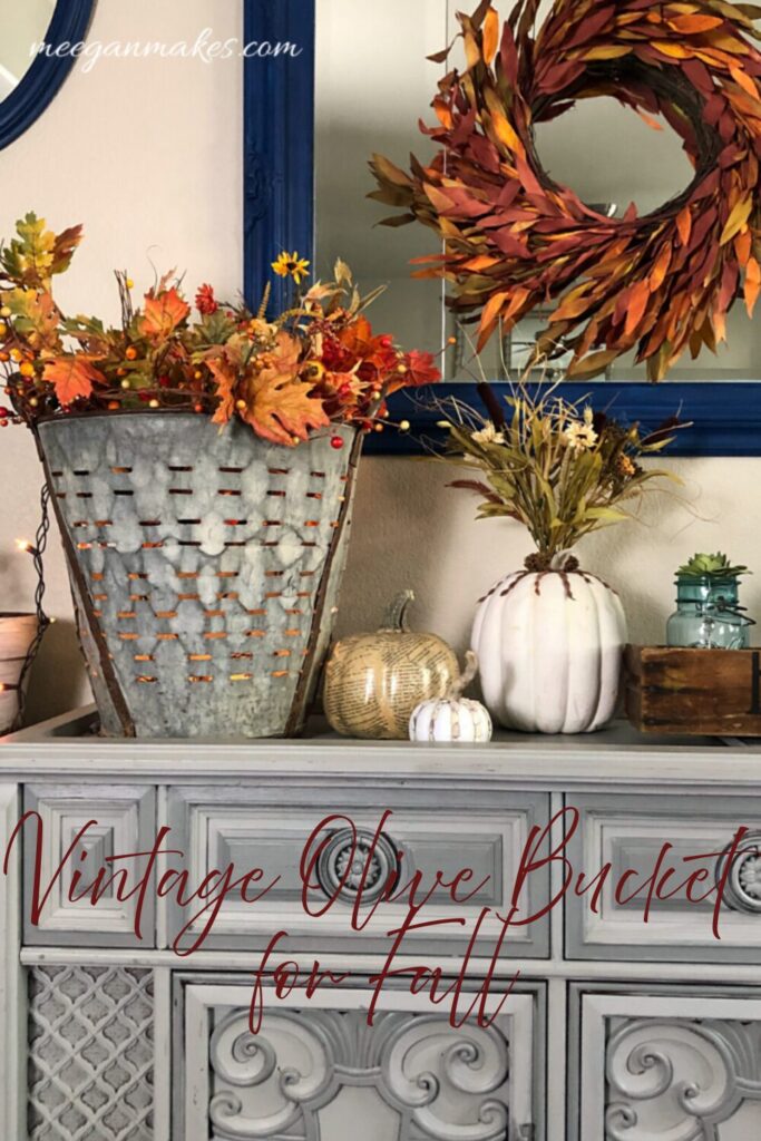 Decorating for various seasons can be overwhelming. This vintage olive bucket decorated for Fall could not be any easier.