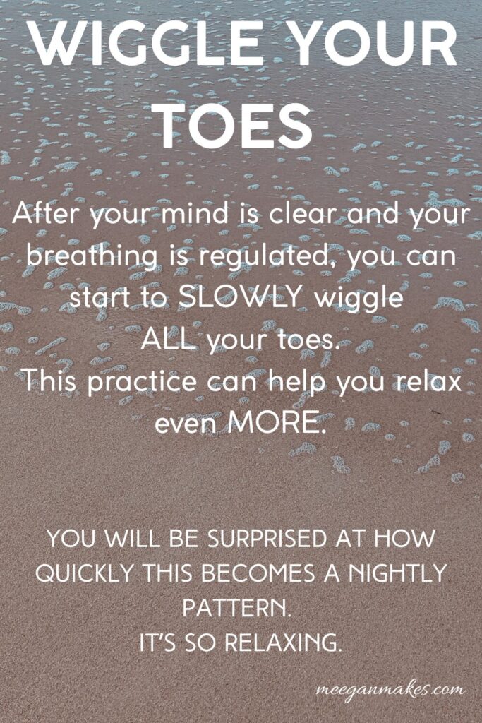 You don’t have to do each one every night. That becomes a task and stress in and of itself. Whichever one fits your need for that day is BEST for YOU. Sometimes it’s just the tender mercies that are needed, praying is a good decompresser, writing can be healing, breathing techniques can help almost anyone and the wiggling of your toes is interesting and relaxing.