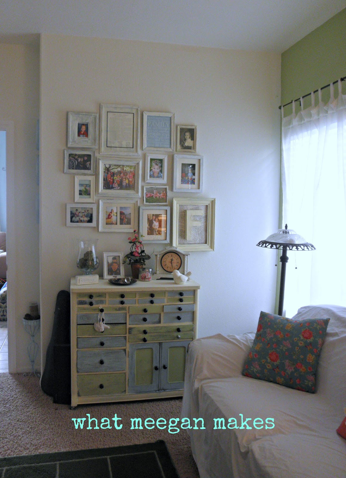 The last wall.  The wooden vintage chest was made by my Grandpa-LOVE it.